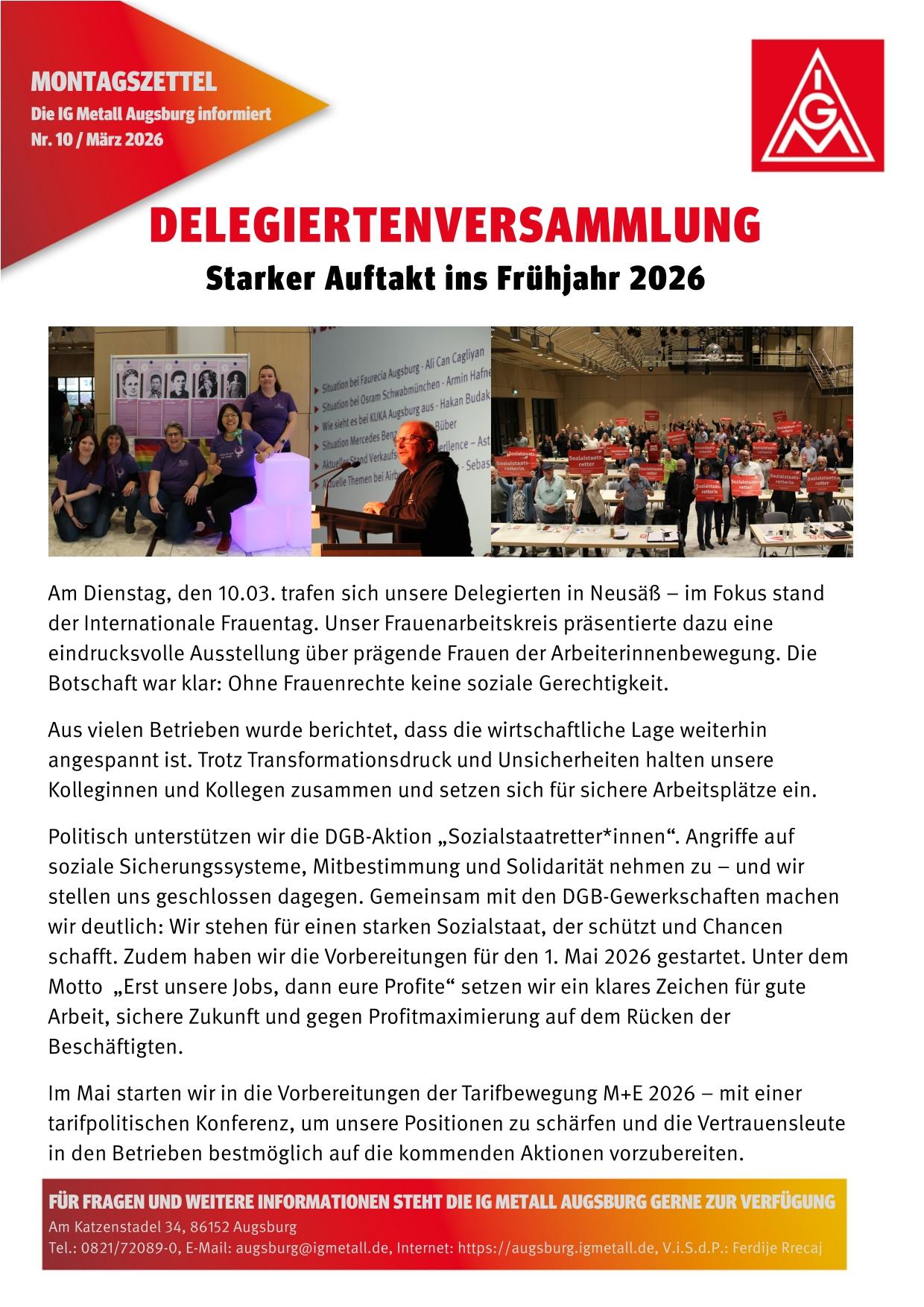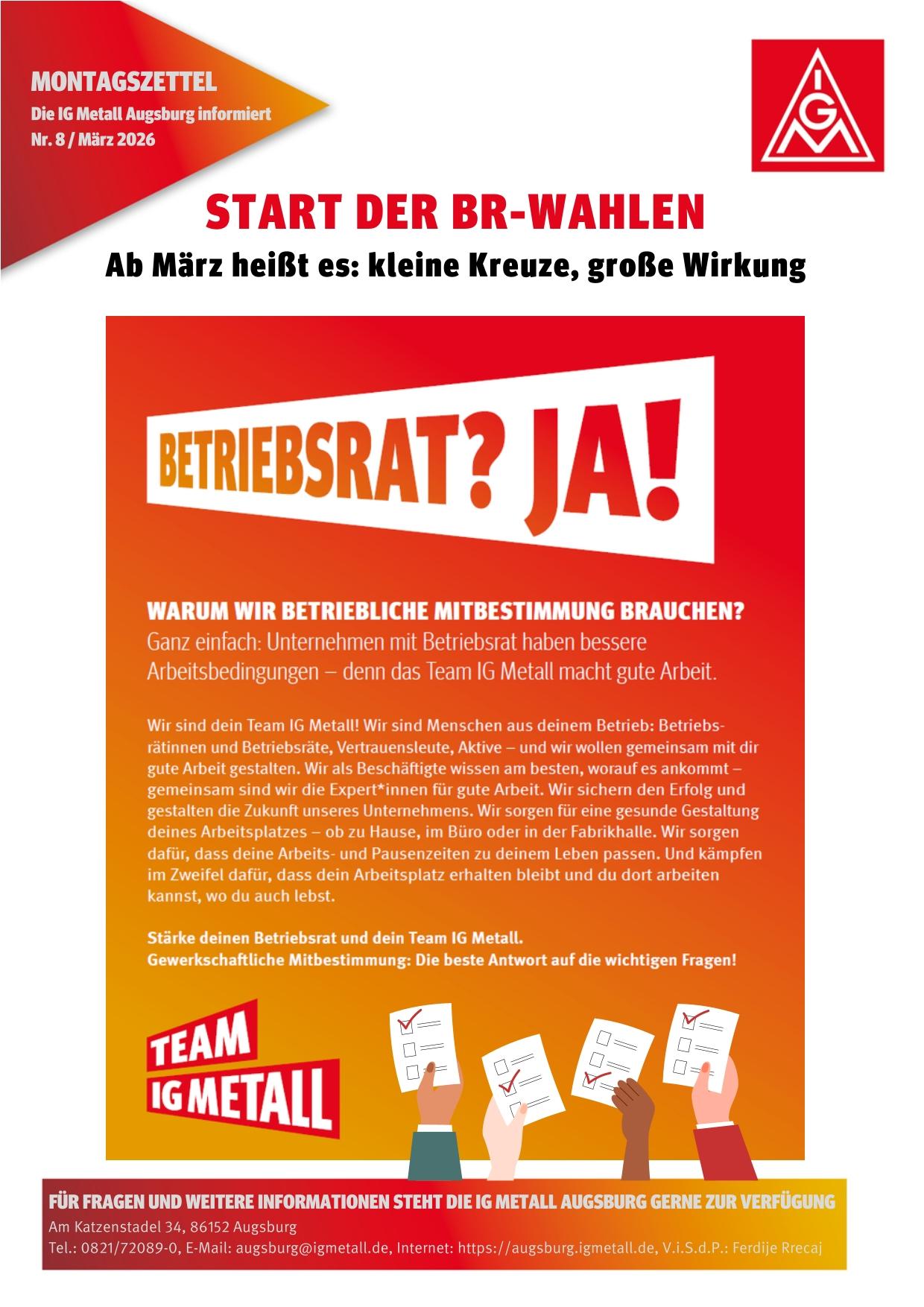Der Montagszettel ist der wöchentliche Newsletter der IG Metall Augsburg.