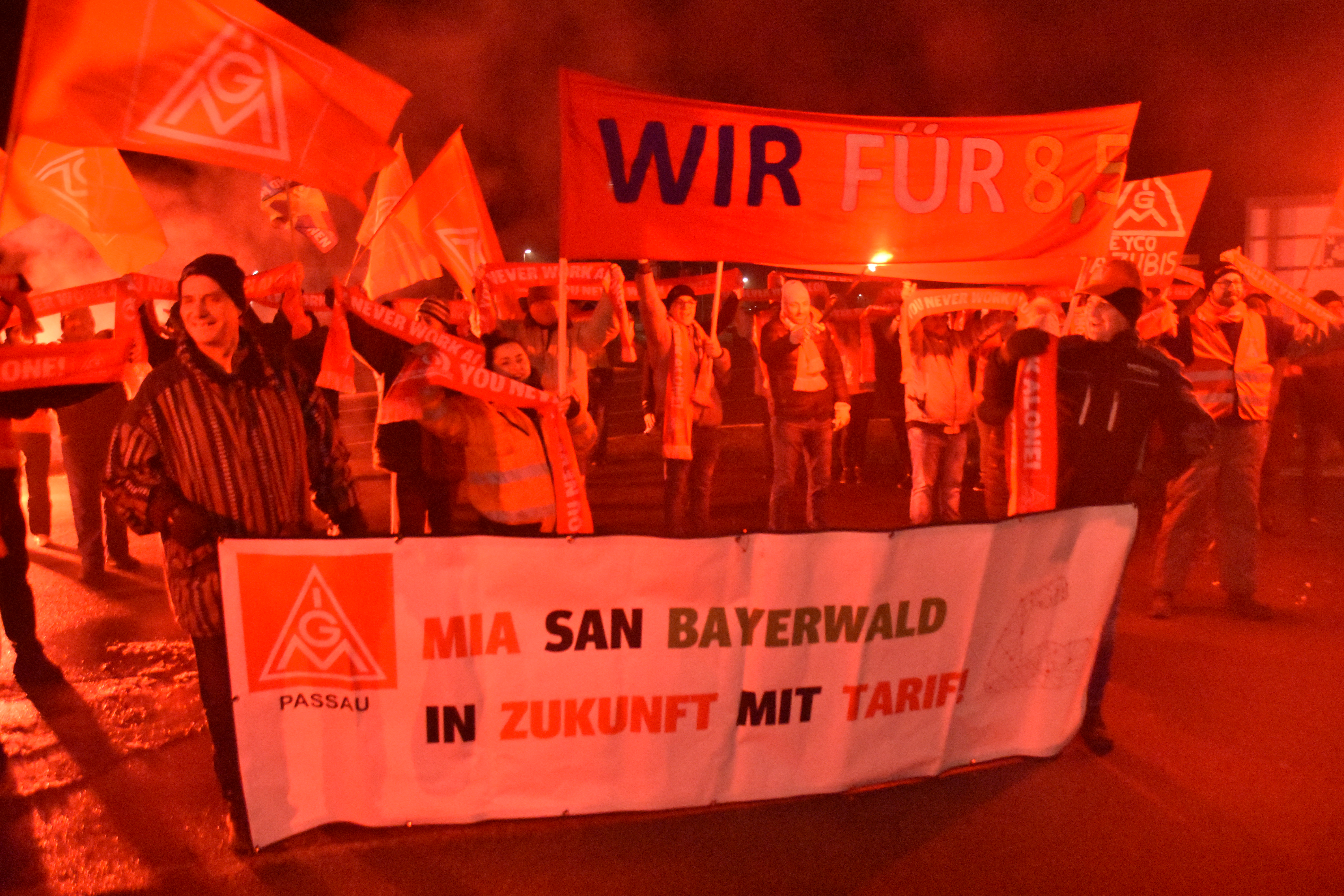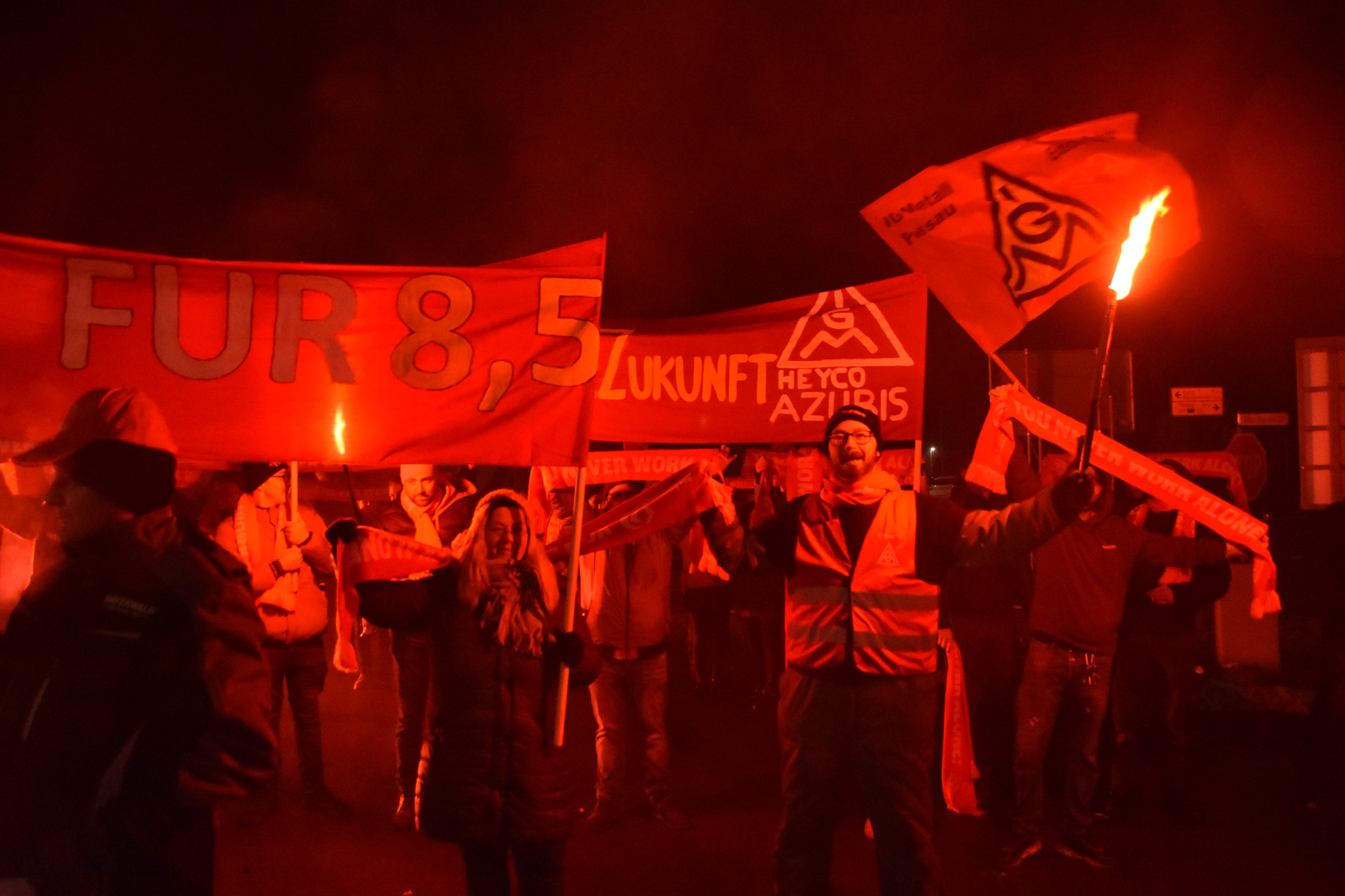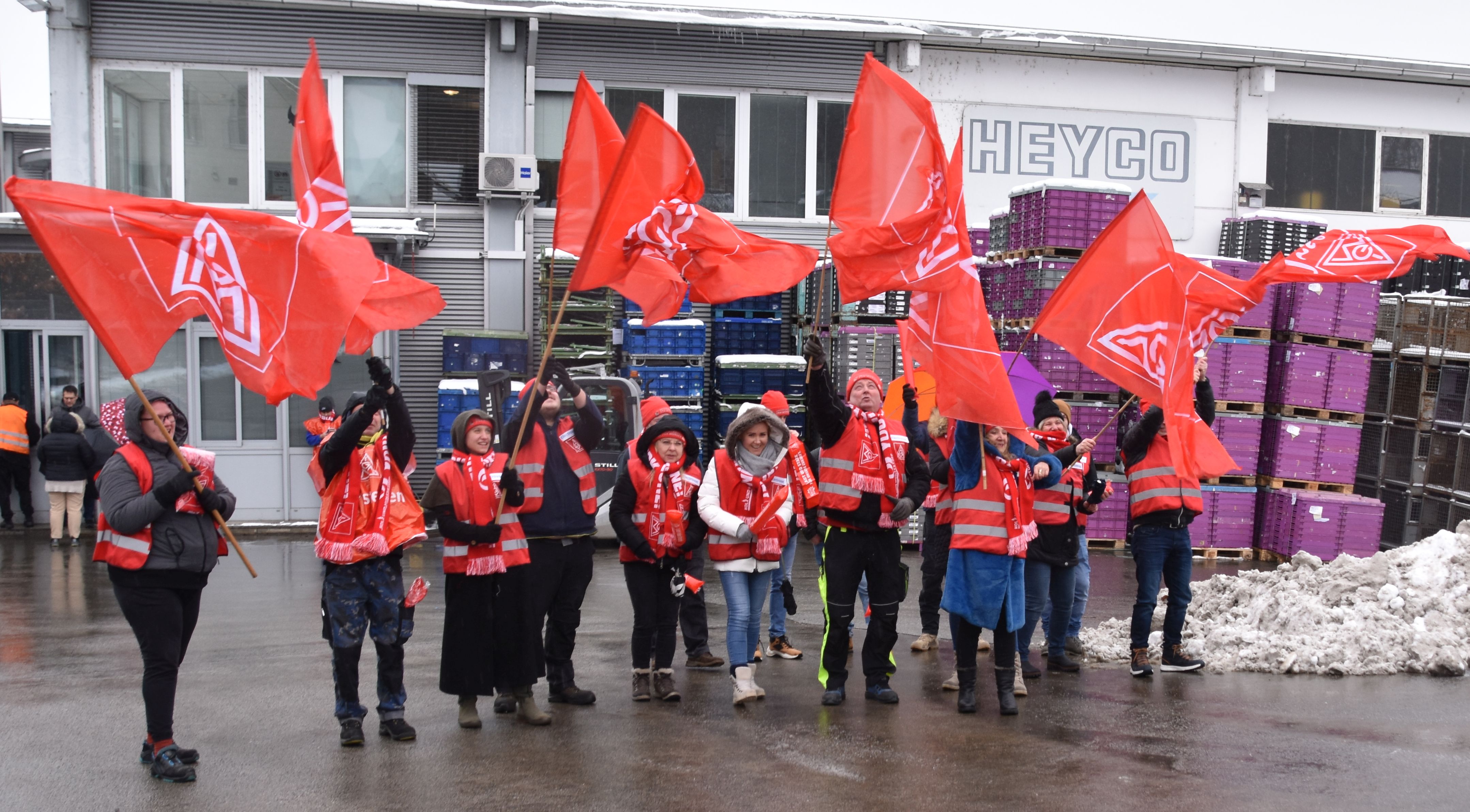 Die Warnstreiks in der Tarifrunde der Holz- und Kunststoffindustrie haben begonnen: 200 Beschäftigte demonstrierten bei der 0-Uhr-Aktion bei Heyco in Tittling ihren Unmut darüber, dass die Arbeitgeber ihnen ein vernünftiges Angebot verweigern. Und die Warnstreiks gehen weiter!