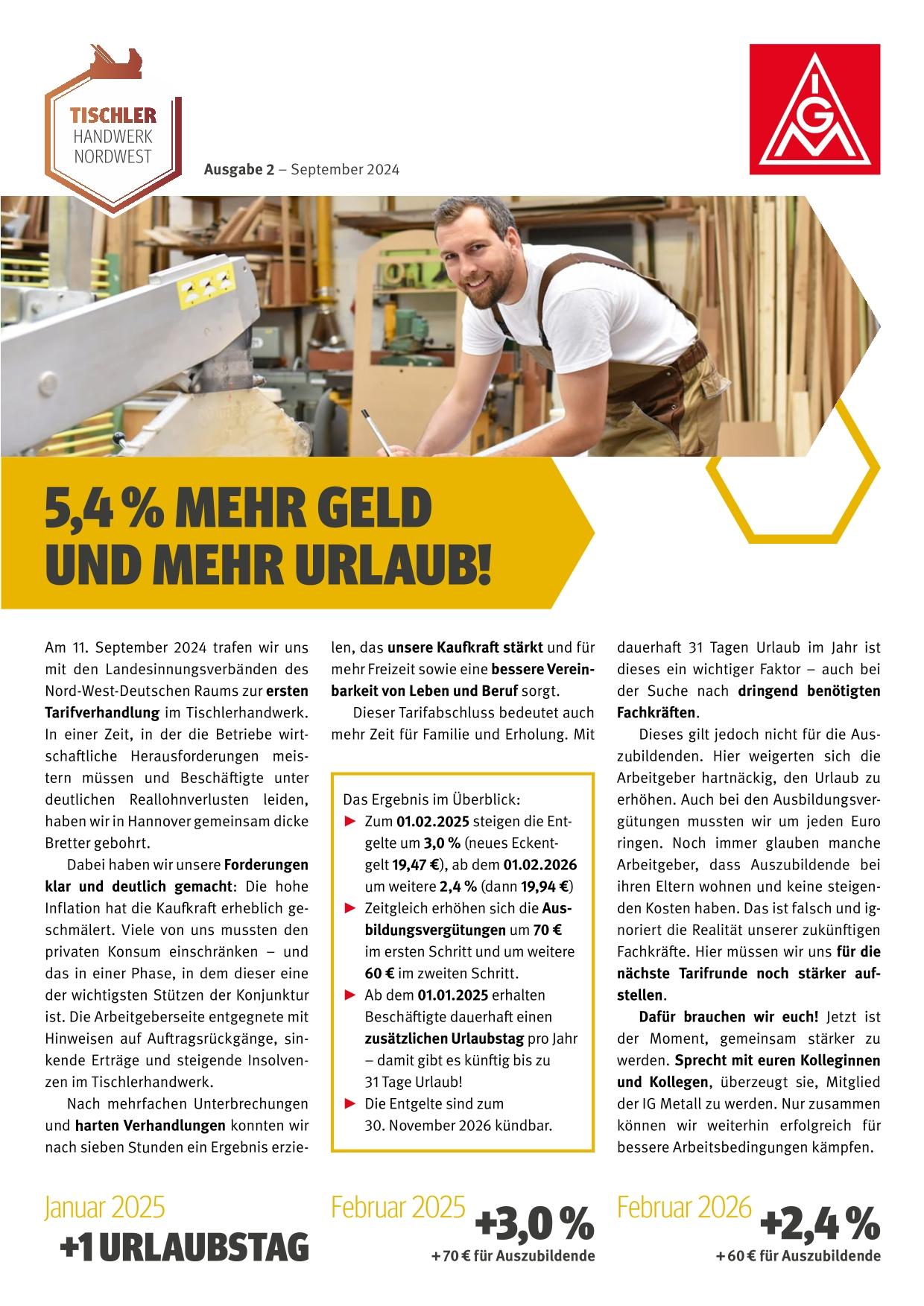 Holz und Kunststoff, Sanitärhandwerk, metallverarbeitendes Handwerk, Modell-Formbauerhandwerk, Parkett- und Bodenleger, Tischlerhandwerk, Raumausstatterhandwerk - hier gibt es aktuelle Tarifinformationen zu laufenden und abgeschlossenen Tarifrunden.